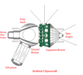 In the case of Voskhod 2, an inflatable exterior airlock was also added to the descent module opposite the entry hatch. The airlock was jettisoned after use. This apparatus was needed because the vehicle avionics and environmental systems were air-cooled, and depressurization in orbit would cause overheating. A solid-fueled braking rocket was also added to the parachute lines to provide for a softer landing at touchdown. This was necessary because, unlike the Vostok, the Voskhod descent module landed with the crewmen still inside.