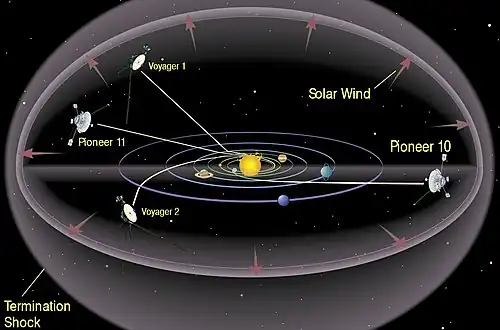 58. ^ McDonald, Frank B.; Stone, Edward C.; Cummings, Alan C.; Heikkila, Bryant; Lal, Nand; Webber, William R. (2003). "Enhancements of energetic particles near the heliospheric termination shock". Nature. 426 (6962): 48–51. Bibcode:2003Natur.426...48M. doi:10.1038/nature02066. PMID 14603312. S2CID 4387317.