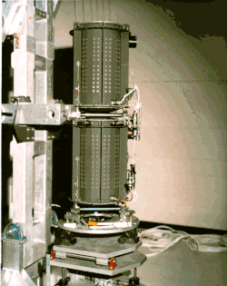 The scan platform comprises: the Infrared Interferometer Spectrometer (IRIS) (largest camera at top right); the Ultraviolet Spectrometer (UVS) just above the IRIS; the two Imaging Science Subsystem (ISS) vidicon cameras to the left of the UVS; and the Photopolarimeter System (PPS) under the ISS.