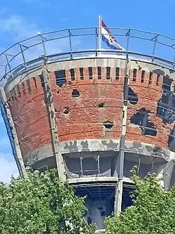 The damage to Vukovar during the siege has been called the worst in Europe since World War II, drawing comparisons with Stalingrad.[63][64] The city's water tower, riddled with bullet holes, was retained by city planners to serve as a testimony to the events of the early 1990s.