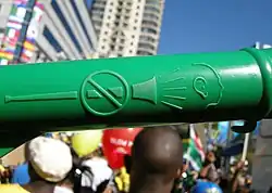 - ^ "New vuvuzelas turn down volume". Sport24. South Africa: 24.com. 14 June 2010. Archived from the original on 22 February 2014. Retrieved 14 June 2010.
