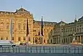 The outdoor square in front of the Residence today measures around 200 meters by 100 meters and is mostly used for parking.[1]: 52  The monumental Frankoniabrunnen fountain from 1894 is located in the square.