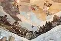 The lowest part of the stair leads away from the reception hall, towards a blank wall and then splits into two stairs which double back. Thus, the host on the upper landing was able to see his visitors first who initially walked away from him. When the guests turned and approached, the vast ceiling fresco above was increasingly revealed to them.[1]: 54–5