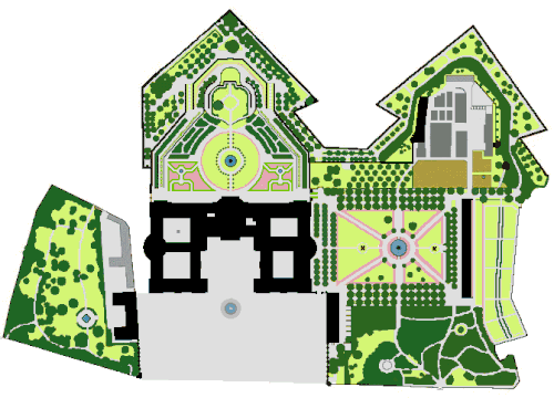 Map of Würzburg Residence with Court Gardens, including the Rosenbach Park (left)