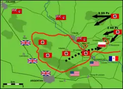 By 30 May, the British were cornered at Dunkirk, and the SS divisions continued the advance into France. The Leibstandarte reached Saint-Étienne, 250 miles south of Paris, and had advanced further into France than any other unit.[76] By the next day, the fighting was all but over.[77] German forces arrived in Paris unopposed on 14 June and France formally surrendered on 25 June. Hitler expressed his pleasure with the performance of the Leibstandarte in the Netherlands and France, telling them, "Henceforth it will be an honour for you, who bear my name, to lead every German attack."[76]