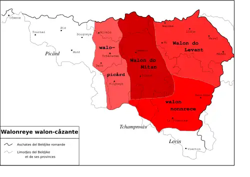 Four dialects of Walloon developed in four distinct zones of Wallonia:[12]