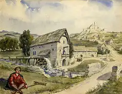 The name Walsall is derived from "Walh halh", meaning "valley of the Welsh", referring to the British who first lived in the area.[4] Later, it is believed that a manor was held here by William FitzAnsculf, who held numerous manors in the Midlands.[5] By the first part of the 13th century, Walsall was a small market town with a manor house; the weekly market was introduced in 1220 and held on Tuesdays.[6] The mayor of Walsall was created as a political position in the 14th century.