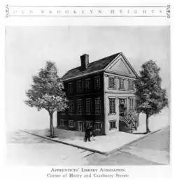 Whitman was born on May 31, 1819, in West Hills, New York, the second of nine children of Quaker parents Walter and Louisa Van Velsor Whitman,[7] of English and Dutch descent respectively.[8] He was immediately nicknamed "Walt" to distinguish him from his father.[9] At the age of four, Whitman moved with his family from Huntington to Brooklyn, living in a series of homes, in part due to bad investments.[10] Whitman looked back on his childhood as generally restless and unhappy, given his family's difficult financial struggles.[11] One happy moment that he later recalled was when he was lifted in the air and kissed on the cheek by the Marquis de Lafayette during a celebration of the setting of the Brooklyn Apprentices' Library's cornerstone by Lafayette in Brooklyn on July 4, 1825.[12] Whitman later worked as a librarian at that institution.[13]