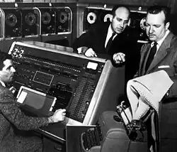 With his name now established, he received a job offer from Edward R. Murrow at CBS News to join the Murrow Boys team of war correspondents, relieving Bill Downs as the head of the Moscow bureau.[19] CBS offered Cronkite $125 (equivalent to $2,832 in 2024) per week along with "commercial fees" amounting to $25 (equivalent to $566.49 in 2024) for almost every time Cronkite reported on air. Until then, he had been making $57.50 (equivalent to $1,303 in 2024) per week at UP, but he had reservations about broadcasting. He initially accepted the offer. When he informed his boss Harrison Salisbury, UP countered with a raise of $17.50 (equivalent to $396.54 in 2024) per week; Hugh Baillie also offered him an extra $20 (equivalent to $453.19 in 2024) per week to stay. Cronkite ultimately accepted the UP offer, which angered Murrow who held a grudge for years.[20][21]