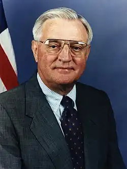 In 1975, Mondale served on the Committee to Study Governmental Operations with Respect to Intelligence Activities, chaired by U.S. Senate member Frank Church of Idaho, that investigated alleged abuses by the Central Intelligence Agency and the Federal Bureau of Investigation.[37] Documents declassified in 2017 show that the National Security Agency had created a file on Mondale as part of its monitoring of prominent U.S. citizens whose names appeared in signals intelligence.[38]