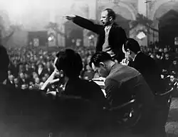 At an event arranged by the Nazi Party on 22 January 1931, Ulbricht was allowed by Joseph Goebbels, the Nazi Party's Gauleiter of Berlin and Brandenburg, to give a speech. Subsequently, Goebbels delivered his own speech. The attempt at a friendly discussion turned hostile and became a debate.[11][12] A struggle between Nazis and Communists began: police officers divided them. Both sides had tried to use this event for their election propaganda.[13] The brawl took two hours to disperse and over a hundred were injured in the melee.[12]