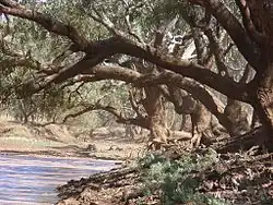 Banjo Paterson was a first-class horseman and loved riding. It is likely that he would have seized any opportunity to go riding at Dagworth. Bob Macpherson (the brother of Christina) and Paterson went riding together and, in Christina's words, "they came to a waterhole (or billabong) & found the skin of a sheep which had been recently killed—all that had been left by a swagman". This incident may have inspired the second verse.[36] Tom Ryan worked at Dagworth in 1895 and recorded an incident in which Paterson accompanied Dagworth horse breaker, Jack Lawton, when he went to the Combo to bring in a mob of horses. They brought them part of the way in and then put them against a fence running into a waterhole. Lawton then took the saddle from his horse and gave it a swim. He then stripped off and dived from a gum tree into the waterhole. Paterson followed suit. Jack then noticed that the mob of horses were walking away and would probably go back to their starting point. He jumped on his own horse without waiting to don any clothes and galloped after the mob. He was surprised, on looking around, to find his companion had again followed his example. On reaching the station that night, Paterson told him it was the best day's outing he had ever had.[37]