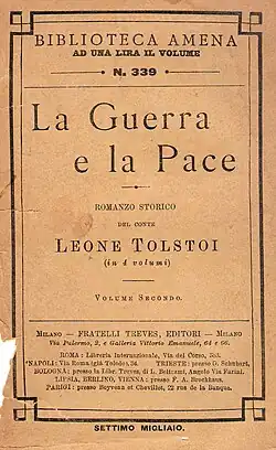 ![]() Front page of War and Peace sixth volume, first edition, 1869 (Russian) | |