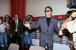 In 1991, he produced and starred as the real-life gangster Bugsy Siegel in the critically acclaimed and commercially successful film Bugsy, directed by Barry Levinson, which was nominated for ten Academy Awards, including Best Picture and Best Actor; it later won two of the awards for Best Art Direction and Best Costume Design.[34] The film also received eight Golden Globe Award nominations, including Best Motion Picture and Best Actor, winning for Best Motion Picture. Beatty's next film, Love Affair (1994), directed by Glenn Gordon Caron, received mixed reviews and was a commercial failure.