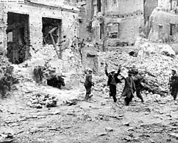 The uprising started on 19 April when the ghetto refused to surrender to the police commander SS-Brigadeführer Jürgen Stroop, who ordered the destruction of the ghetto, block by block, ending on 16 May. According to Stroop at least 56,065 Jews were killed or captured. Stroop reported 110 German casualties, including 16 killed.[5]