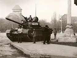 A Romanian TR-85 tank in December 1989 (Romania's TR-85 and TR-580 tanks were the only non-Soviet tanks in the Warsaw Pact on which restrictions were placed under the 1990 CFE Treaty[97])