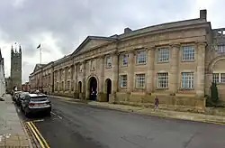There are three tiers of local government covering Warwick, at parish (town), district, and county level: Warwick Town Council, Warwick District Council and Warwickshire County Council. The town council is based at the Court House on Jury Street, which was completed in 1731.[46][47] The district council, although taking its name from Warwick, is based in the neighbouring town of Leamington Spa. Warwickshire County Council has its headquarters at Shire Hall, a complex of buildings between Market Place and Northgate Street in the centre of Warwick.