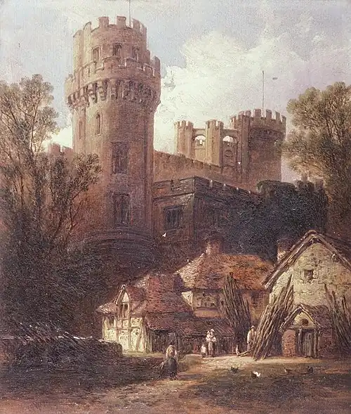 In 1802 George Greville, 2nd Earl of Warwick of the new creation, had debts amounting to £115,000 (£13 million as of 2023).[32] The earl's estates, including Warwick Castle, were given to the Earl of Galloway and John FitzPatrick, 2nd Earl of Upper Ossory, in 1806, but the castle was returned to the earls of Warwick in 1813.[5] The Great Hall was reroofed and repaired in Gothic taste in 1830–31 by Ambrose Poynter.[53] Anthony Salvin was responsible for restoring the Watergate Tower in 1861–63.[49]