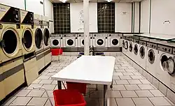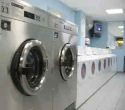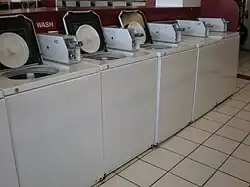 England established public washrooms for laundry along with bathhouses throughout the nineteenth century.[19] The term "laundromat" can be found in newspapers as early as 1884, and they were widespread by the time of the Depression. Patrons used coin-in-the-slot facilities to rent washing machines.[20]