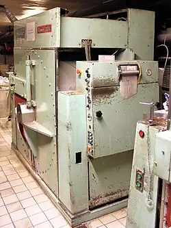 The first English patent under the category of washing machines was issued in 1691.[2] A drawing of an early washing machine appeared in the January 1752 issue of The Gentleman's Magazine, a British publication.[3] Jacob Christian Schäffer's washing machine design was published in 1767[3] in Germany.[4] In 1782, Henry Sidgier was issued a British patent for a rotating drum washer, and in the 1790s, Edward Beetham sold numerous "patent washing mills" in England.[1]