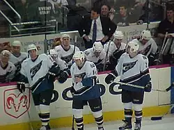 Before the 2002–03 season, the Caps made more roster changes, including the signing of Robert Lang as a free agent, a linemate of Jagr's from Pittsburgh.[75] The Capitals also hired Grand Rapids Griffins coach Bruce Cassidy as head coach.[79] Washington returned to the playoffs in 2003, but lost in six games to the Tampa Bay Lightning after starting off with a two-game lead.[80]