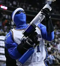 A contest was held to choose a new name and the choices were narrowed to the Dragons, Express, Stallions, Sea Dogs, and the Wizards.[92] On May 15, 1997, the Bullets officially became the Wizards. The new name generated some controversy because "wizard" is a rank in the Ku Klux Klan, and Washington has a large African American population.[92] A new logo was unveiled and the team colors were changed from the traditional red, white and blue to a lighter shade of blue, black and bronze, the same colors as the Washington Capitals of the National Hockey League (NHL), also owned by Pollin and changed from red, white and blue before the 1995–96 season. Washington forward Juwan Howard sat on the committee that decided on the logo design.[93] That same year the Wizards moved to the then MCI Center (Capital One Arena), also home to the Capitals and the Georgetown Hoyas men's college basketball team.[94]