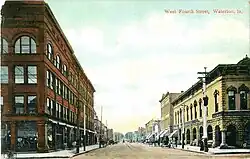 In 1910, black railroad workers were brought in as strikebreakers to the Waterloo area.[12][13] Black workers were relegated to 20 square blocks in Waterloo, an area that remains the east side to this day.[12][13] In 1940, more black strikebreakers were brought in to work in the Rath meat plant.[14] In 1948, a black strikebreaker killed a white union member. Instead of a race riot, a strike ensued against the Rath Company. The National Guard was called in to end the 73-day strike.[14]