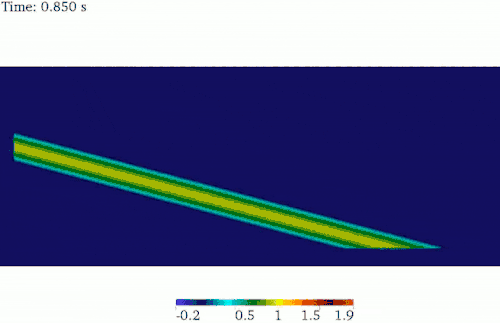 The analytical solution of SV-wave in a half-space indicates that the plane SV wave reflects back to the domain as a P and SV waves, leaving out special cases. The angle of the reflected SV wave is identical to the incidence wave, while the angle of the reflected P wave is greater than the SV wave. For the same wave frequency, the SV wavelength is smaller than the P wavelength. This fact has been depicted in this animated picture.[21]