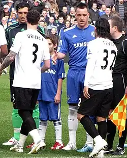 Bridge's temperament and consistency, together with a high level of fitness, enabled him to continue to play every match until 18 January 2003 when he limped off with an injury in a 1–0 defeat to Liverpool.[15] This brought to an end a run of 113 consecutive appearances, a Premier League record for an outfield player (since surpassed by Frank Lampard).[16] His run started on 4 March 2000, from when Bridge played 10,160 consecutive minutes of Premier League football, not missing any play through injury or suspension.[15]
