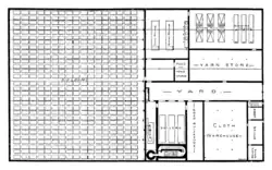 In 1784 Edmund Cartwright first proposed building a weaving machine that would function similarly to recently developed cotton-spinning mills, drawing scorn from critics who said the weaving process was too nuanced to automate.[66] He built a factory at Doncaster and obtained a series of patents between 1785 and 1792. In 1788, his brother Major John Cartwight built Revolution Mill at Retford (named for the centenary of the Glorious Revolution). In 1791, he licensed his loom to the Grimshaw brothers of Manchester, but their Knott Mill burnt down the following year (possibly a case of arson). Edmund Cartwight was granted a reward of £10,000 by Parliament for his efforts in 1809.[67][68] However, success in power-weaving also required improvements by others, including H. Horrocks of Stockport. Only during the two decades after about 1805, did power-weaving take hold. At that time there were 250,000 hand weavers in the UK.[69] Textile manufacture was one of the leading sectors in the British Industrial Revolution, but weaving was a comparatively late sector to be mechanised. The loom became semi-automatic in 1842 with Kenworthy and Bulloughs Lancashire Loom. The various innovations took weaving from a home-based artisan activity (labour-intensive and man-powered) to steam driven factories process. A large metal manufacturing industry grew to produce the looms, firms such as Howard & Bullough of Accrington, and Tweedales and Smalley and Platt Brothers. Most power weaving took place in weaving sheds, in small towns circling Greater Manchester away from the cotton spinning area. The earlier combination mills where spinning and weaving took place in adjacent buildings became rarer. Wool and worsted weaving took place in West Yorkshire and particular Bradford, here there were large factories such as Lister's or Drummond's, where all the processes took place.[70] Both men and women with weaving skills emigrated, and took the knowledge to their new homes in New England, to places like Pawtucket and Lowell.