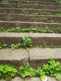"Weed" as a category of plant overlaps with the closely related concepts of ruderal and pioneer species.[22] Pioneer species are specifically adapted to disturbed environments, where the existing plant and soil community has been disrupted or damaged in some way. Adaptation to disturbance can give weeds advantages over desirable crops, pastures, or ornamental plants. The nature of the habitat and its disturbances will affect or even determine which types of weed communities become dominant.[23] In weed ecology some authorities speak of the relationship between "the three Ps": plant, place, perception. These have been very variously defined, but the weed traits listed by H.G. Baker are widely cited.[24][25]
