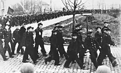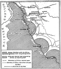 During the 1920 Kapp Putsch, Seeckt refused to deploy the Reichswehr against the Freikorps involved in the putsch,[20] but immediately afterwards had the Ruhr Red Army brutally suppressed during the Ruhr uprising. In 1921, the Reichswehr organized the Black Reichswehr, a secret reserve networked within the Reichswehr and organized as labor battalions (Arbeitskommandos) to circumvent the Treaty of Versailles' 100,000 man limit on the German army.[21] The Black Reichswehr was never involved in direct military action and was dissolved in 1923 after a group of its members attempted to overthrow the government in the Küstrin Putsch.[22] The Reichswehr also developed far-reaching cooperation with the Soviet Red Army, leading among other things to the secret training of German military pilots in clear violation of the Treaty of Versailles.[23]