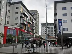 In a bid to reverse Wembley's fortunes, in the mid-2000s plans were created and approved to completely regenerate the place, carried out by construction company St. Modwen. The first phase, including construction of eighty-five homes, reconstruction of the plaza as a new public square and opening of new retail units including a TK Maxx, was completed in 2009.[30][31] The rest was completed in phases until 2015 after nine years' time, with additional retail and housing units.[32] The local Argos store also moved to a new unit in the redeveloped Central Square.