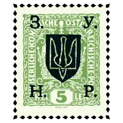 The West Ukrainian People's Republic (Ukrainian: Західноукраїнська Народна Республіка (ЗУНР), romanized: Zakhidnoukrainska Narodna Respublika [ZUNR]; see other names) was a short-lived state that controlled most of Eastern Galicia from November 1918 to July 1919. It included major cities of Lviv, Ternopil, Kolomyia, Drohobych, Boryslav, Stanyslaviv and right-bank Peremyshl. Apart from lands of Eastern Galicia, it also claimed the northern part of Bukovyna and the Carpathian Ruthenia. Politically, the Ukrainian National Democratic Party (the precursor of the interwar Ukrainian National Democratic Alliance) dominated the legislative assembly, guided by varying degrees of Greek Catholic, liberal and socialist ideology.[2] Other parties represented included the Ukrainian Radical Party and the Christian Social Party.