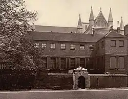 Westminster School is a public school in Westminster, London, England, in the precincts of Westminster Abbey. It descends from a charity school founded by Westminster Benedictines before the Norman Conquest, as documented by the Croyland Chronicle and a charter of King Offa. Continuous existence is clear from the early 14th century.[8] Westminster was one of nine schools examined by the 1861 Clarendon Commission[9] and reformed by the Public Schools Act 1868. The school motto, Dat Deus Incrementum, quotes 1 Corinthians 3:6: "I planted the seed... but God made it grow."[10] The school owns playing fields and tennis courts in the centre of the 13-acre (5-hectare) Vincent Square,[11] along which Westminster Under School is also situated.[12]
