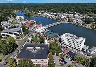 The Town of Westport was officially incorporated on May 28, 1835, with lands from Fairfield, Weston and Norwalk.[3][10] Daniel Nash led 130 people of Westport in the petitioning of the Town of Fairfield for Westport's incorporation. The driving force behind the petition was to assist their seaport's economic viability that was being undermined by neighboring towns' seaports.[11] For several decades after that, Westport was a prosperous agricultural community, distinguishing itself as the leading onion-growing center in the U.S. In addition, Westport became a shipping center in part to transport onions to market.[12] Blight caused the collapse of Westport's onion industry, leading to mills and factories replacing agriculture as the town's economic engine.[5]