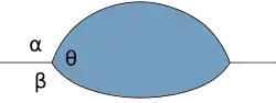 where α, β, and θ are the angles shown and γij is the surface energy between the two indicated phases. These relations can also be expressed by an analog to a triangle known as Neumann's triangle, shown in Figure 4. Neumann's triangle is consistent with the geometrical restriction that , and applying the law of sines and law of cosines to it produce relations that describe how the interfacial angles depend on the ratios of surface energies.[16]