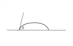 - Contact angle – Angle between a liquid–vapor interface and a solid surface