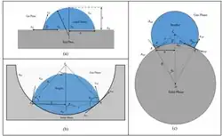 - ^ a b c Jasper, Warren J.; Anand, Nadish (May 2019). "A generalized variational approach for predicting contact angles of sessile nano-droplets on both flat and curved surfaces". Journal of Molecular Liquids. 281: 196–203. doi:10.1016/j.molliq.2019.02.039. S2CID 104412970.