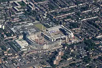 White Hart Lane was a football stadium in Tottenham, North London and the home of Tottenham Hotspur from 1899 to 2017. Its capacity varied over the years; when changed to all-seater it had a capacity of 36,284.[3] The stadium was fully demolished after the end of the 2016–17 season.[4]