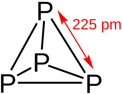 4 molecule in the gas phase has a P-P bond length of rg = 2.1994(3) Å as was determined by gas electron diffraction.[7] The β form of white phosphorus contains three slightly different P