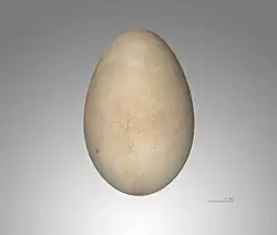 A white stork pair raises a single brood a year. The female typically lays four eggs, though clutches of one to seven have been recorded.[79] The eggs are white, but often look dirty or yellowish due to a glutinous covering. They typically measure 73 mm × 52 mm (2.9 in × 2.0 in),[92] and weigh 96–129 g (3.4–4.6 oz),[79] of which about 11 g (0.39 oz) is shell.[92] Incubation begins as soon as the first egg is laid, so the brood hatches asynchronously, beginning 33 to 34 days later. The first hatchling typically has a competitive edge over the others. While stronger chicks are not aggressive towards weaker siblings, as is the case in some species, weak or small chicks are sometimes killed by their parents.[93][94] This behavior occurs in times of food shortage to reduce brood size and hence increase the chance of survival of the remaining nestlings. White stork nestlings do not attack each other, and their parents' feeding method (disgorging large amounts of food at once) means that stronger siblings cannot directly outcompete weaker ones for food; hence, parental infanticide is an efficient way to reduce brood size. Despite this, the behavior has not been commonly observed.[93]
