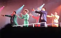 Houston's professional career began when she joined her mother's band as a background singer at fourteen while Cissy performed at Manhattan cabaret clubs.[41] Houston gave her first solo during Cissy's performance at Manhattan's Town Hall in February 1978, performing "Tomorrow" from the Broadway musical, Annie, where she received her first standing ovation.[42][43] Houston began a career as a session vocalist backing up artists like her mother, Michael Zager, Chaka Khan and Lou Rawls.[44][45] Houston was the featured vocalist in Zager's disco song "Life's a Party" (1978).[46]