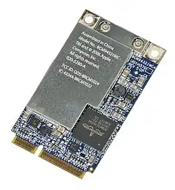 The major commercial breakthrough came with Apple Inc. adopting Wi-Fi for their iBook series of laptops in 1999.[11] It was the first mass consumer product to offer Wi-Fi network connectivity, which was then branded by Apple as AirPort.[18] This was in collaboration with the same group that helped create the standard: Vic Hayes, Bruce Tuch, Cees Links, Rich McGinn, and others from Lucent.[19][20]