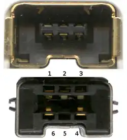 The Wii Remote uses two AA size alkaline batteries as a power source, which can power a Wii Remote for 60 hours using only the accelerometer functionality and 25 hours using both accelerometer and pointer functionality.[52] In May 2013, Nintendo announced a rechargeable battery and dock accessory, and various third-party manufacturers market charging solutions for the controller (see Wii Remote Chargers).[61] Nintendo's industrial designer Lance Barr said that the Wii Remote's expansion port is unsuitable for internal battery charging.[62] The only type of (externally charged) rechargeable battery supported is nickel-metal hydride (NiMH).[63] A 3300 μF capacitor provides a temporary source of power during quick movements of the Wii Remote when connection to the batteries may be temporarily interrupted.[58] If the Wii Remote is not used for more than 5 minutes, such as when the player is using a GameCube controller, it will shut off, and can be re-activated by pressing any button (this was also the case when using a now discontinued video-on-demand service). Games are able to determine and react to the current battery life of Wii Remotes, with certain games using unique, extra-diegetic methods of alerting the player to low battery life.[64]