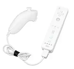 The Wii Remote,[a] colloquially known as the Wiimote, is the primary game controller for Nintendo's Wii home video game console. An essential capability of the Wii Remote is its motion sensing capability, which allows the user to interact with and manipulate items on screen via motion sensing, gesture recognition, and pointing using an accelerometer and optical sensor technology. It is expandable by adding attachments. The attachment bundled with the Wii console is the Nunchuk, which complements the Wii Remote by providing functions similar to those in gamepad controllers. Some other attachments include the Classic Controller, Wii Zapper, and the Wii Wheel, which was originally released with the racing game Mario Kart Wii.