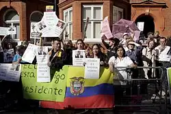 After Julian Assange was granted asylum and entered the Ecuadorian embassy in London in 2012, new CCTV cameras were installed and security personnel working for UC Global and Promsecurity recorded his activities and interactions, including with his legal team.[122] In a 2017 email, the surveillance was justified with suspicions that Assange was "working for the Russian intelligence services."[123] New cameras and microphones were installed in December 2017, and Morales arranged for the United States to have immediate access to the recordings.[124]