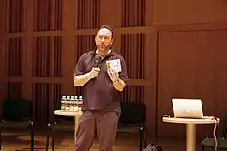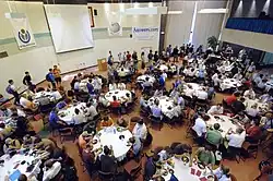 Wikimania 2011, the seventh Wikimania conference, was held from August 4 to 7, 2011 in Haifa, Israel.[35] The conference venue was the Haifa Auditorium and adjoining Beit Hecht cultural center on Mount Carmel. Keynote speakers at the conference included Yochai Benkler, a fellow at the Berkman Center for Internet and Society at Harvard University and Joseph M. Reagle Jr. of MIT, author of Good Faith Collaboration: The Culture of Wikipedia.[36] Head of the Science and Technology Committee at the Knesset, Meir Sheetrit, also spoke at the conference, as did Yonah Yahav, the Mayor of Haifa.[37] One of the sponsors of the event was Haifa University.[38] The conference featured 125 sessions in five simultaneous tracks and was attended by 720 Wikimedians[35] from 56 different countries,[37] including some that have no diplomatic relations with Israel.[39]