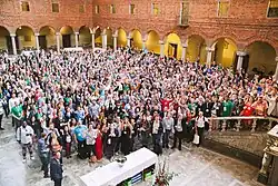 Wikimania 2019, the fifteenth Wikimedia conference, was held in Stockholm, Sweden, from August 14 to 18, 2019, at the Stockholm University, with an attendance of over 800.[16][75] The event centered around the theme Stronger Together: Wikimedia, Free Knowledge and the Sustainable Development Goals. As part of the movement's sustainability initiative, The Wikimedia Sverige and the Wikimedia Foundation decided to pay half of the carbon offsetting cost. Terrapass, sponsored the other half of the offsetting for the conference. The Wikimedia Coolest Tool Award was inaugurated in this conference.[76]