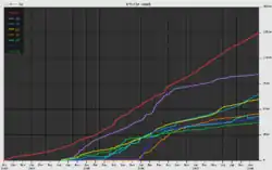 Initially, the project operated only in English from July 2003, expanding to include other languages in July 2004.[2] As of January 2026, there are active Wikiquote sites for 76 languages[1] comprising a total of 367,254 articles and 3,304 recently active editors.[3]